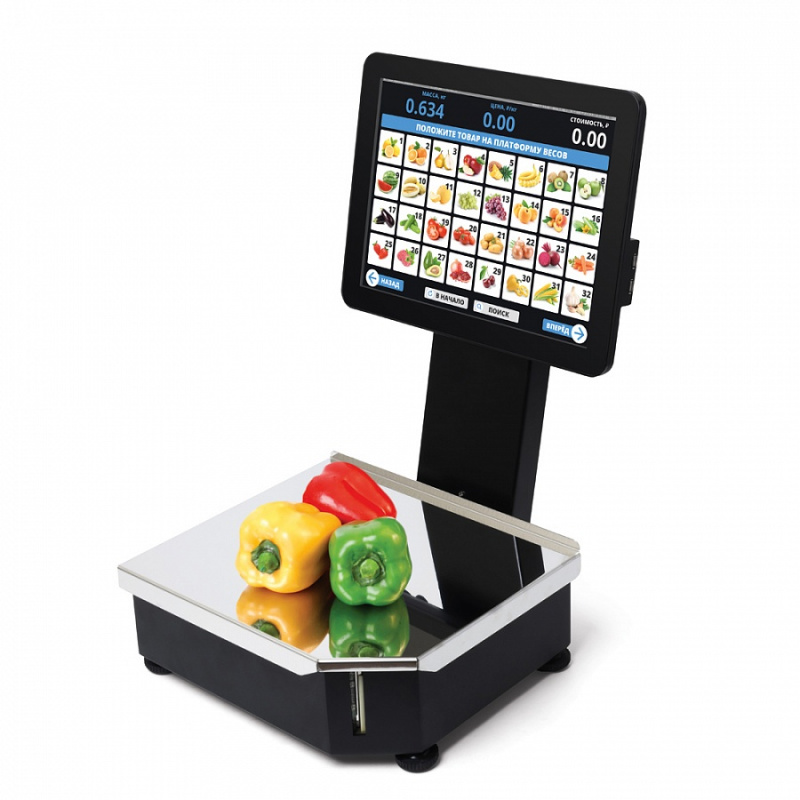 Весы с печатью этикеток с весовым блоком «ШТРИХ-М» и безрамочным POS-моноблоком. Количество загружаемых товаров (PLU) неограниченно, благодаря полноценному компьютеру внутри моноблока. Сенсорные технологии делают управление весами простым и интуитивно понятным.